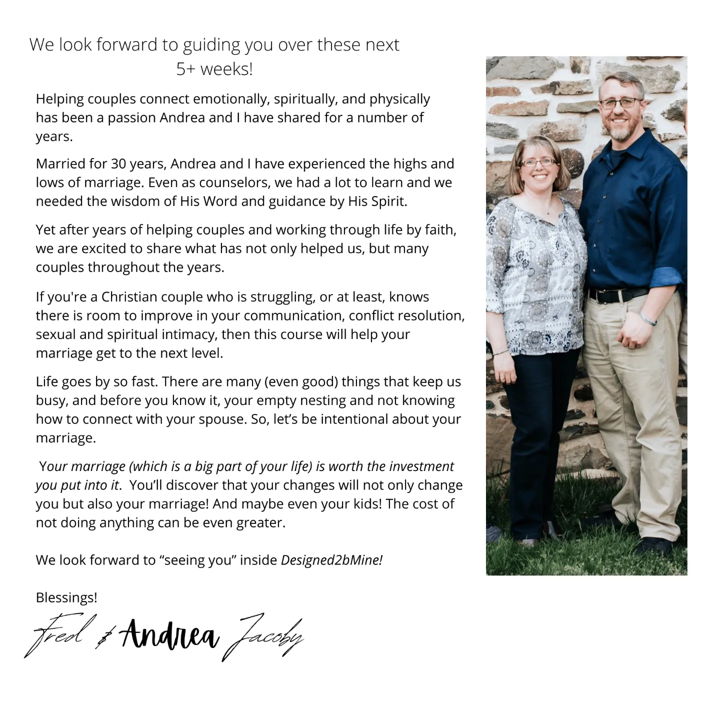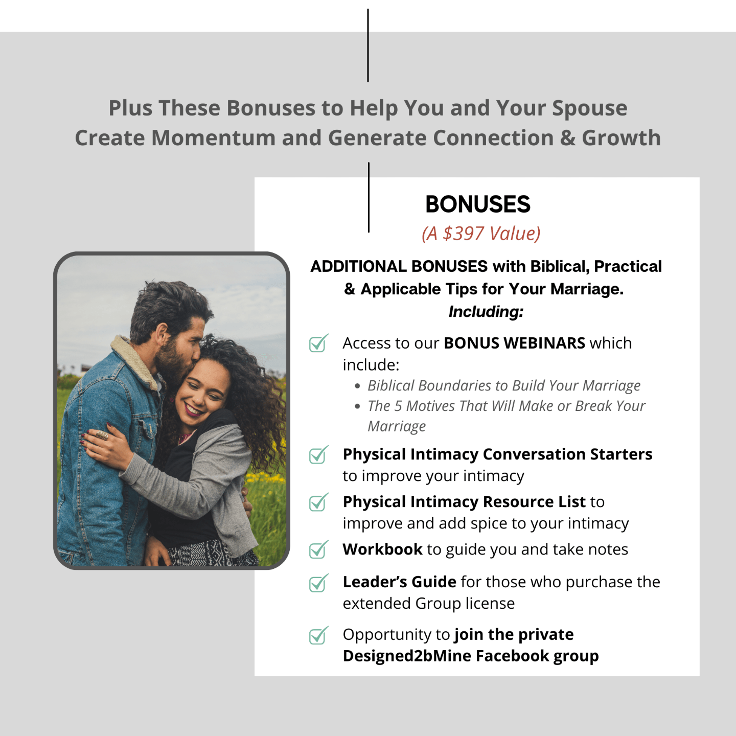 Designed2bMine is the one-of-a-kind Couples Connection Course helping Christian spouses overcome obstacles, increase intimacy, and create meaningful moments.